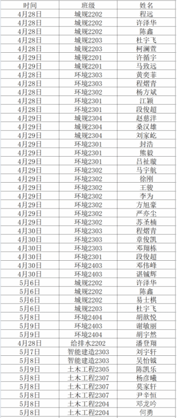 土木与环境工程学院学风建设第十一周课堂检查结果公示