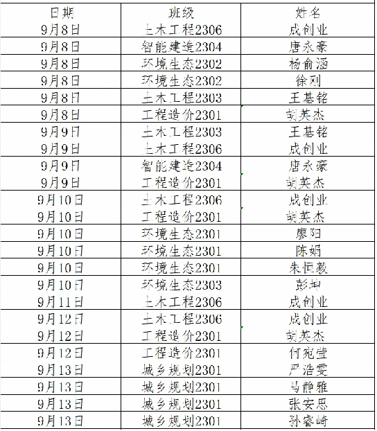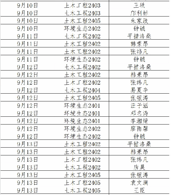 土木与环境工程学院学风建设第一周课堂检查结果公示