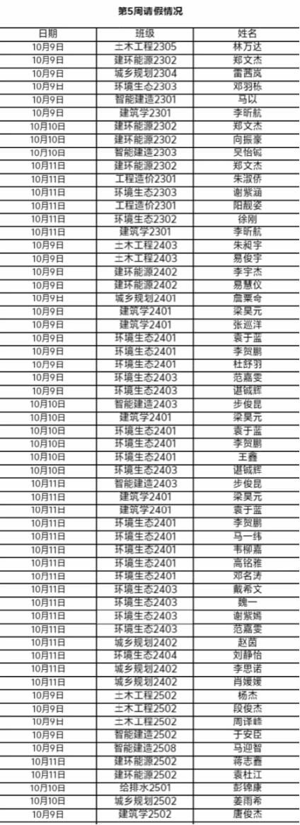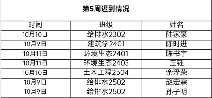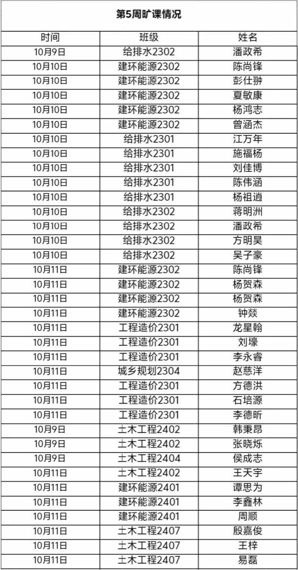 土木与环境工程学院学风建设第五周课堂检查结果公示